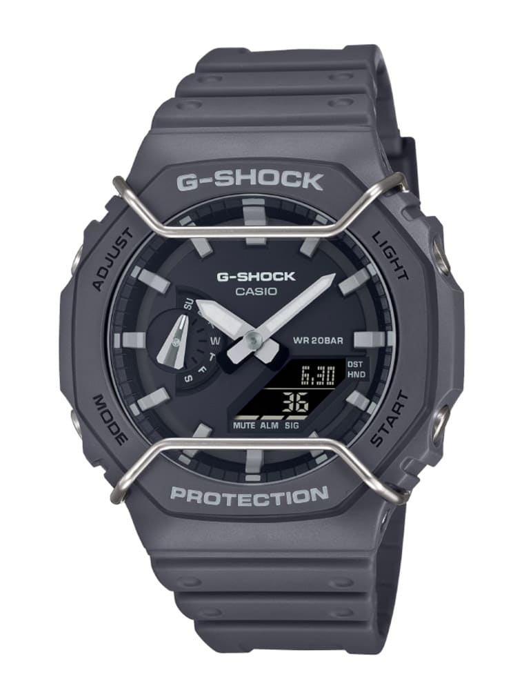 G-SHOCK Tone-On-Tone Protector系列集結農家橡樹GA-2100、圓殼DW-5700,以及品牌長青款方殼DW-5600等。其與原本設計最大的不同在於品牌從汽車防撞桿獲得靈感,在手錶錶圈上下分別裝上金屬保護器,提高手錶正面的保護作用,也讓其看起來比起原本更粗獷強悍。相對於其他兩個系列,農家橡樹因為誕生的時間比較晚,所以這也是G-SHOCK首度打造具備金屬保護器的農家橡樹,形成新奇誘人的視覺吸引力。