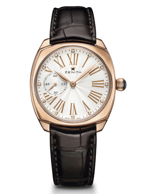 真力時全新傳承系列星動33毫米手錶揉合卓越技術與古典美感特質,以玫瑰金或精鋼打造的枕形錶殼極具復古時尚風範,較之前錶款更為小巧,33 x 33毫米的嬌小身形盡顯優雅線條,仿佛為了更好地詮釋占據手錶設計核心的纖巧。手錶厚度僅為9.45毫米,考究而簡潔,33毫米傳承系列星動手錶配備鑲嵌凸圓形藍寶石的錶冠,搭配棕色或灰色鱷魚皮錶帶和針式表扣。優雅與卓越合二為一。