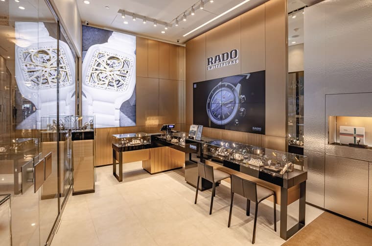 台北101雷達表旗艦店採用與全球同步的最新店裝概念,以金色與大地色系為主體搭配立體紋理細節,與洗鍊的藝術風格線條設計,打造出明亮溫暖且時尚優雅的低調奢華氛圍。店內特別設有品牌精心設置的Lifestyle Corner,讓客戶可以在此輕鬆舒適地欣賞品牌個系列手錶。