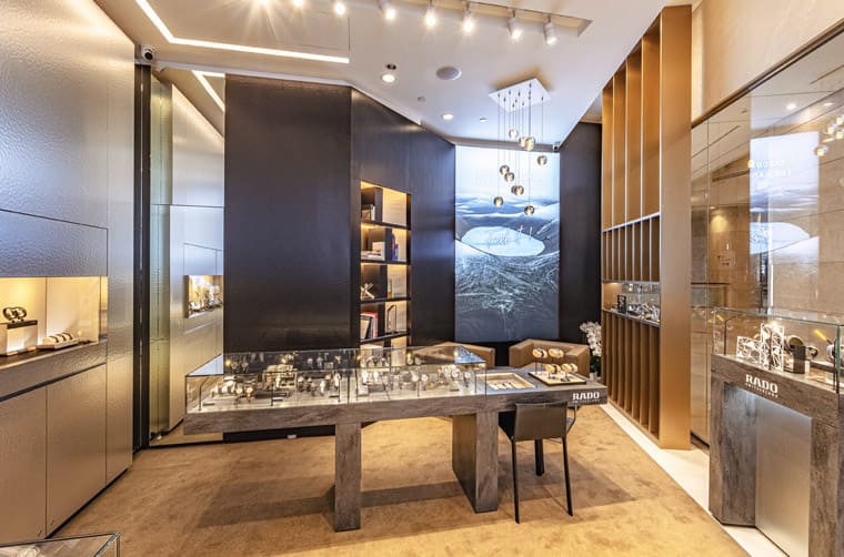▲台北101雷達表旗艦店店內跳脫品牌過往傳統,改以金色與大地色系裝飾。
