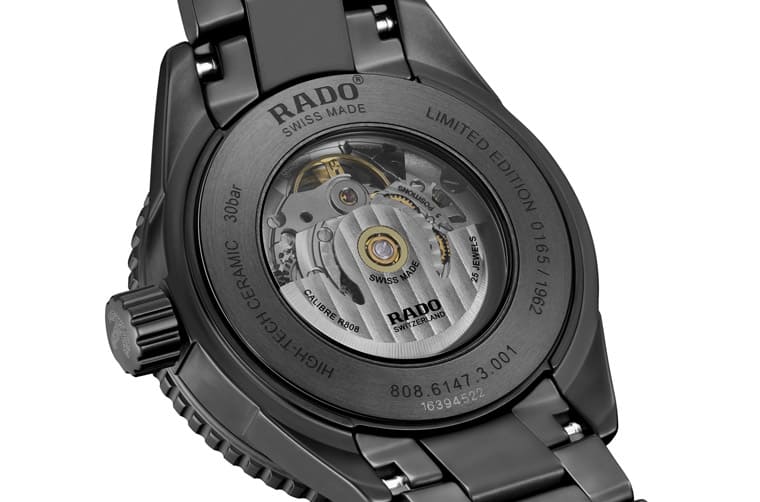 黑色高科技陶瓷材質/Calibre R808自動上鍊機芯/時、分、秒顯示/藍寶石水晶鏡面/防水300米/錶徑43mm/限量1962只/參考價:NT$ 136,100(雷達表台北101旗艦店獨賣)