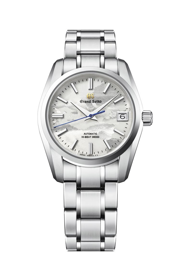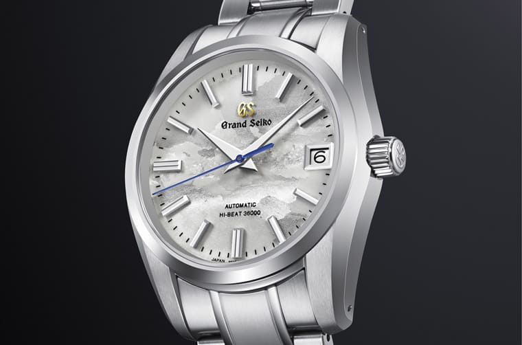 SBGH311的銀白色面盤近看別有洞天,GRAND SEIKO以類似水墨畫的墨色暈染堆疊手法,交錯利用面盤顏色與紋路塑造層次,據說品牌如此設計的繆思來自GS機械錶生產基地——岩手縣岩手山雲海景象,這種景色一般只會在日出或日落時分出現,當富含水氣的濃密雲團漸次聚集在山谷時,便會形成匯聚成壯觀的銀白色海洋畫面,只不過這種景色往往轉瞬即逝,因此GRAND SEIKO想到可以將之「凍結」手錶面盤上,除了獨特、吸引人,也含有向自家製錶工藝致敬的深意。