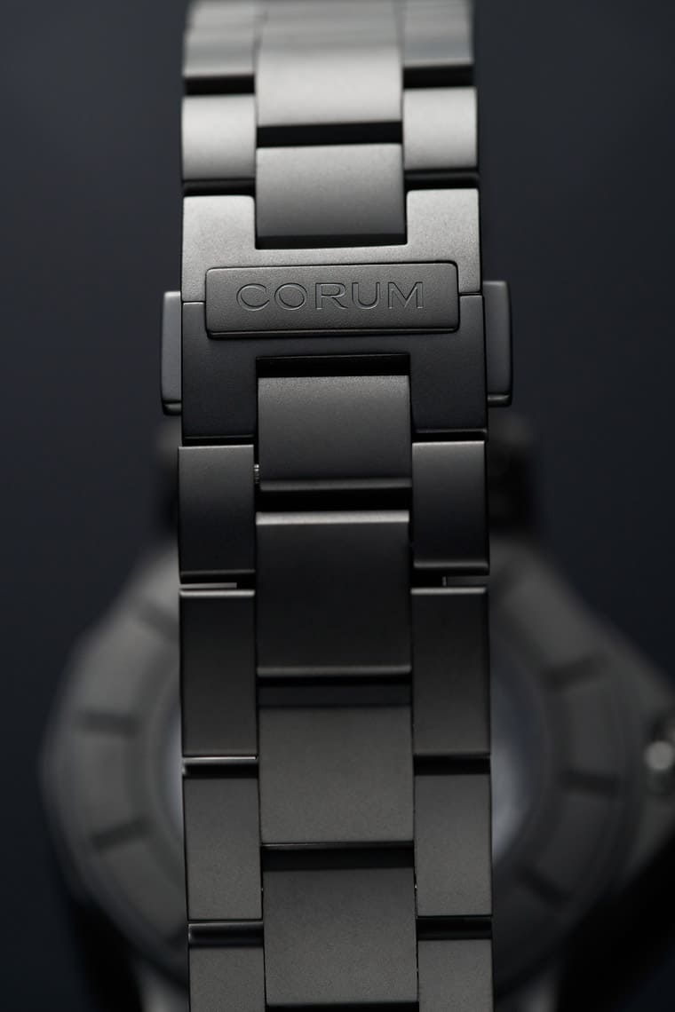 新款海軍上將Admiral 42自動錶採用DLC炮銅灰噴砂表面處理不鏽鋼材質,而且不僅錶殼,手錶可是配置不鏽鋼鍊帶,因此連鍊帶也都經過DLC與噴砂處理,如此一來包括錶圈、錶殼和鍊帶都會帶有獨特塗層,不容易留下指紋。