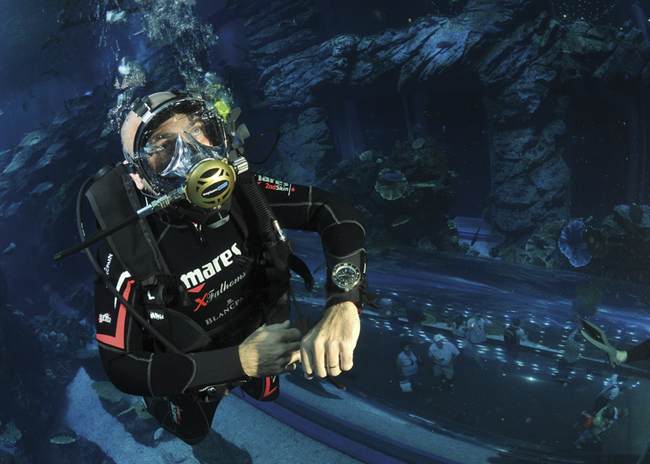 2011年身為潛水愛好者的寶鉑總裁Marc A. Hayek,在杜拜購物中心的水族館內向在場眾人展示了五十噚家族的X Fathoms。