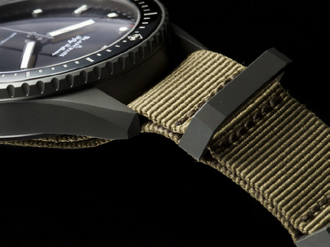 使用多種複合材質的50噚Bathyscaphe潛水錶,以陶瓷錶圈、鈦金屬材質加上磨砂處理,型塑出錶體的深層立體視感。