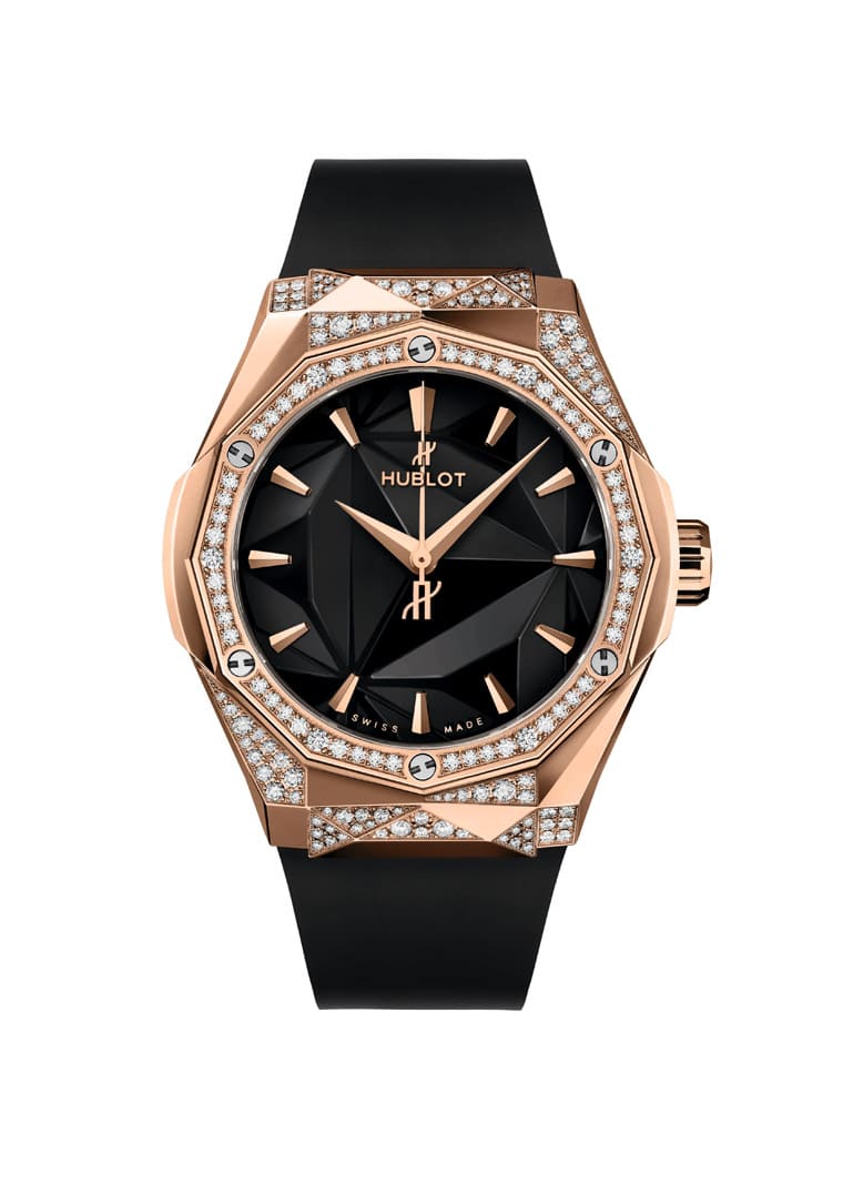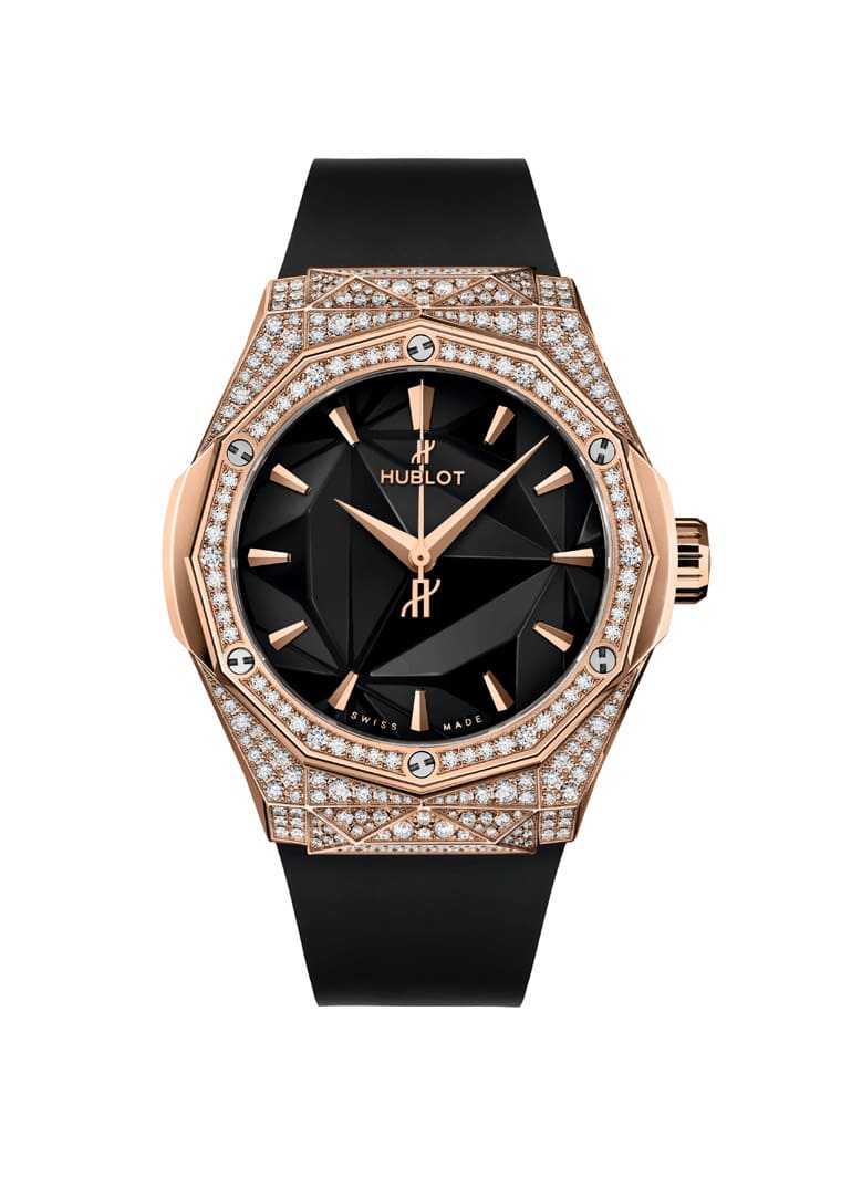 18K皇金材質/HUB1100自動上鍊機芯/時、分、秒顯示/錶款鑲鑽210顆,約重1克拉/藍寶石水晶鏡面/防水50米/錶徑40mm/參考價:NT$ 1,060,000