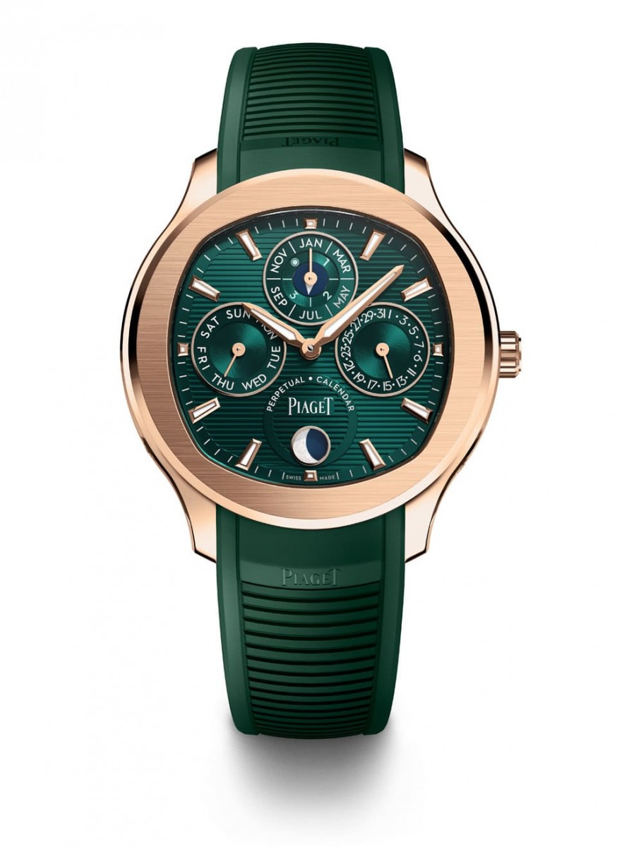 PIAGET Polo系列18K玫瑰金礦石綠超薄萬年曆自動腕錶