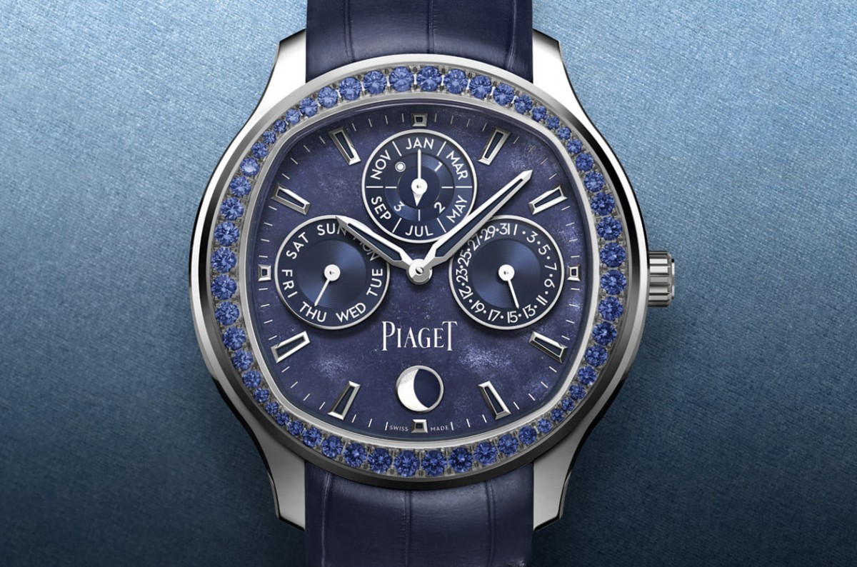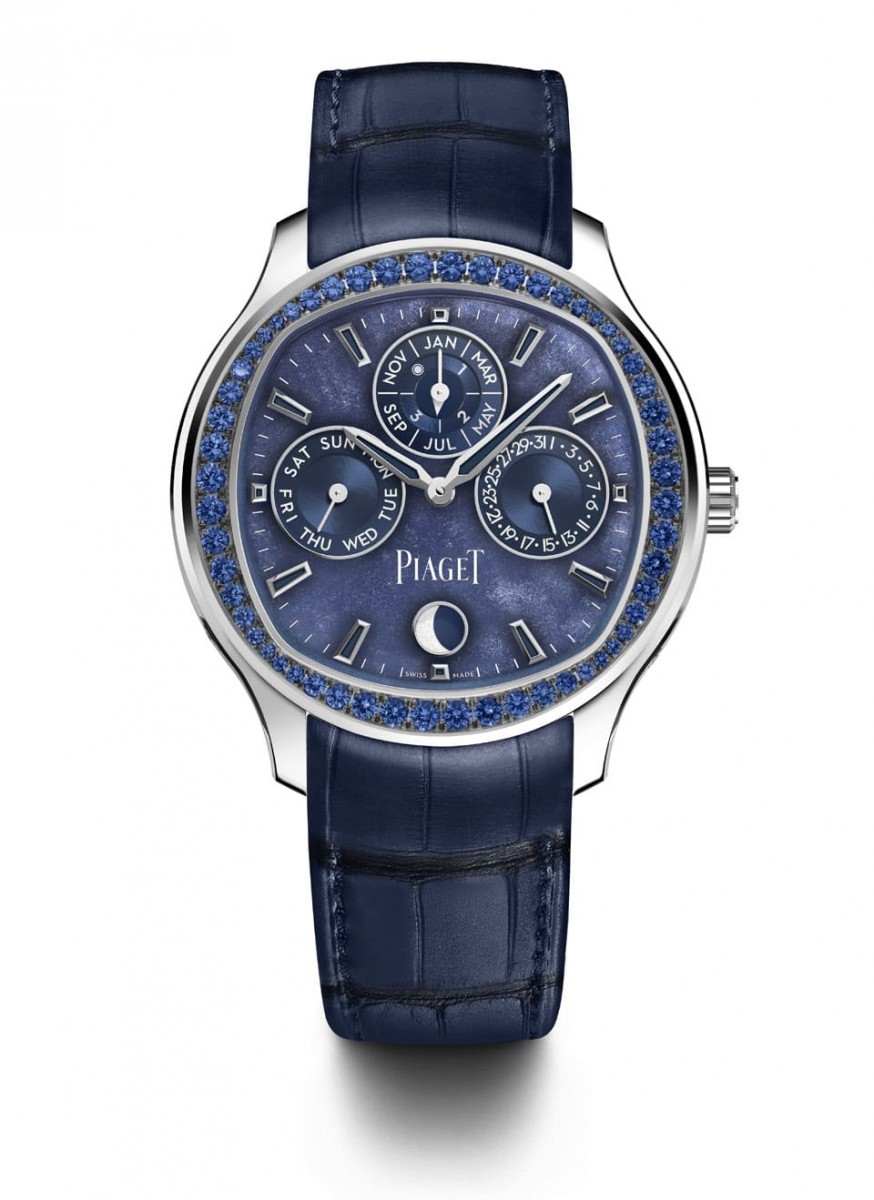 PIAGET Polo系列黑曜石面盤藍寶石超薄萬年曆自動腕錶