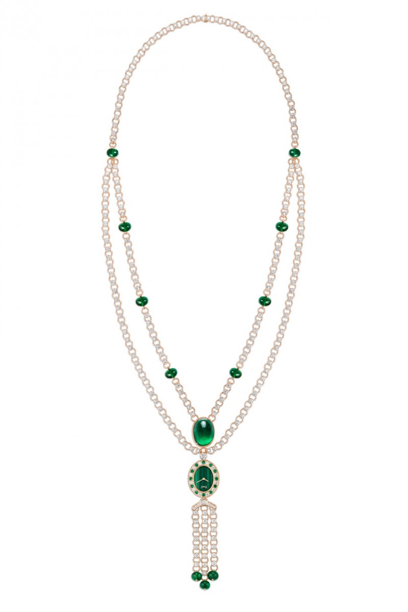 PIAGET Swinging Sautoir 18K玫瑰金孔雀石面盤祖母綠項鍊錶