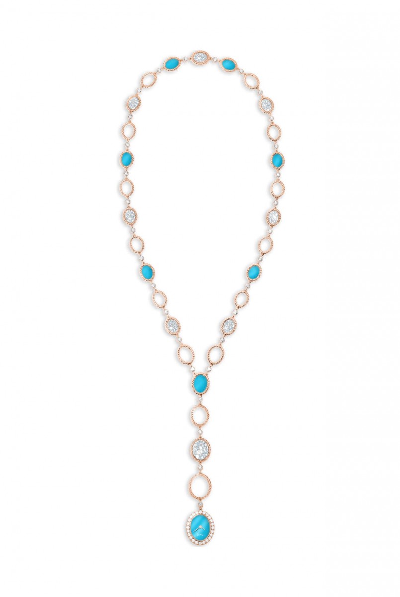 PIAGET Swinging Sautoir 18K玫瑰金土耳其石面盤鑽石項鍊錶