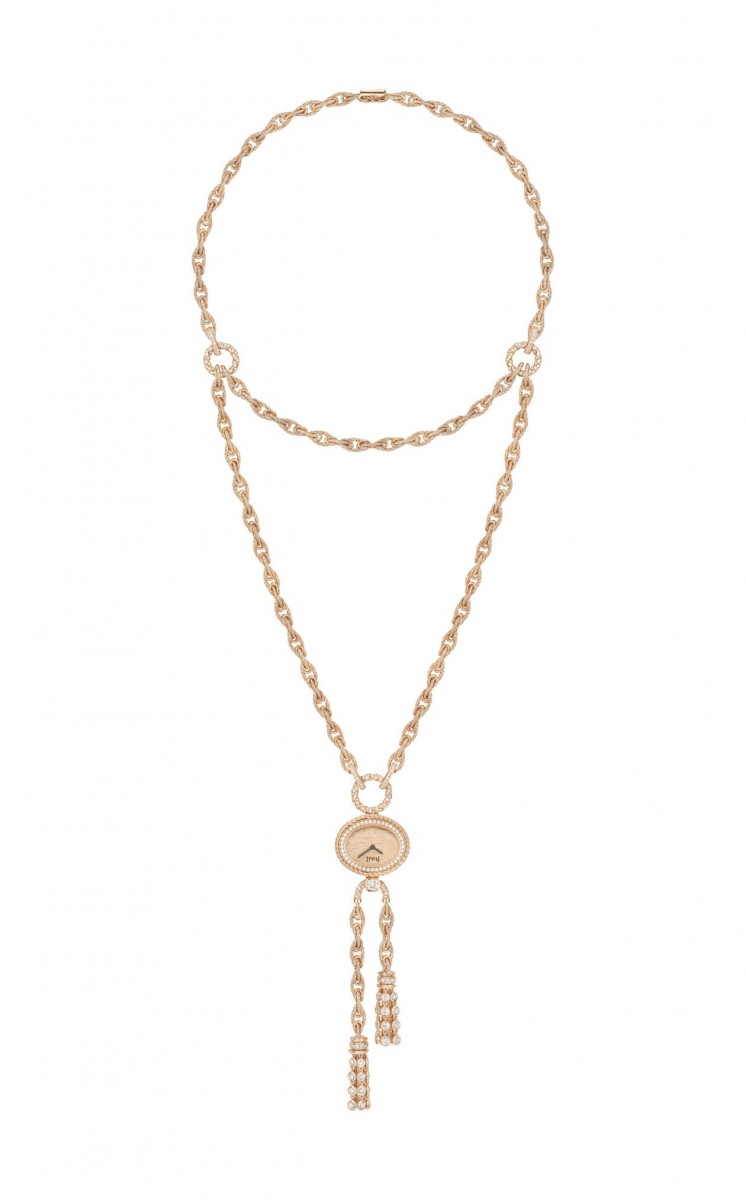PIAGET Swinging Sautoir 18K玫瑰金宮廷式雕刻飾紋鑽石項鍊錶