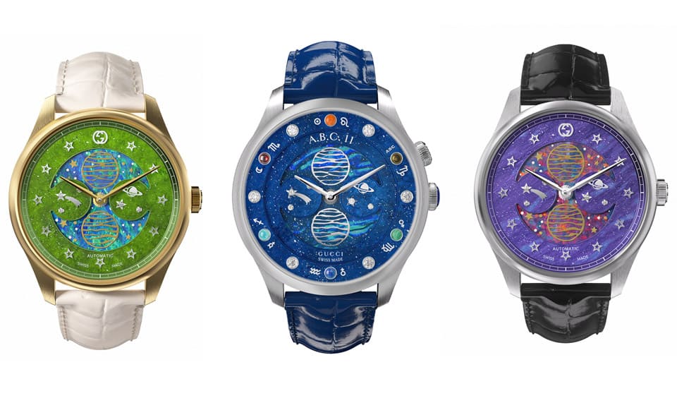 GUCCI 2023年的高級製錶作品聚焦在太空旅行的黃金時代並展現對探索的熱情,新品遍佈品牌旗下的5個系列,一方面傳承GUCCI的傳統與精益求精的工藝底蘊,同時也把品牌的招牌元素、創新設計美學以及寶石鑲嵌工藝融於一體,以下分別針對各系列特色新品帶大家一探究竟。