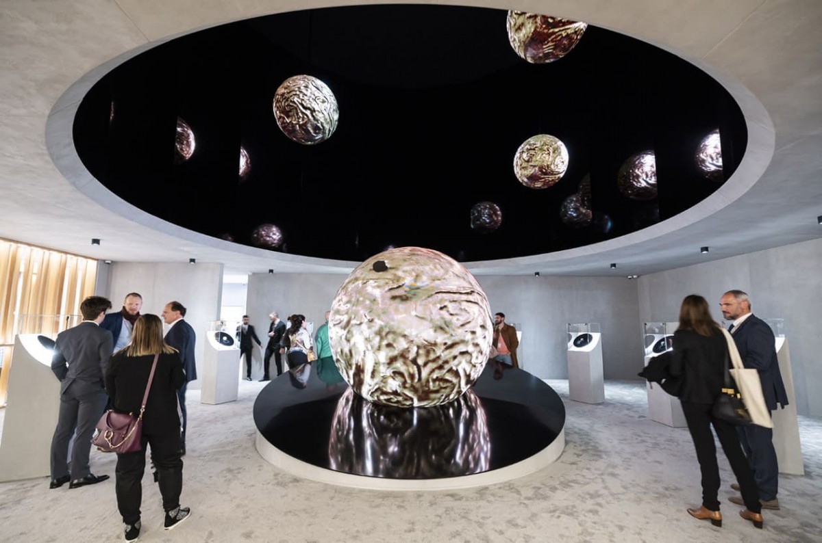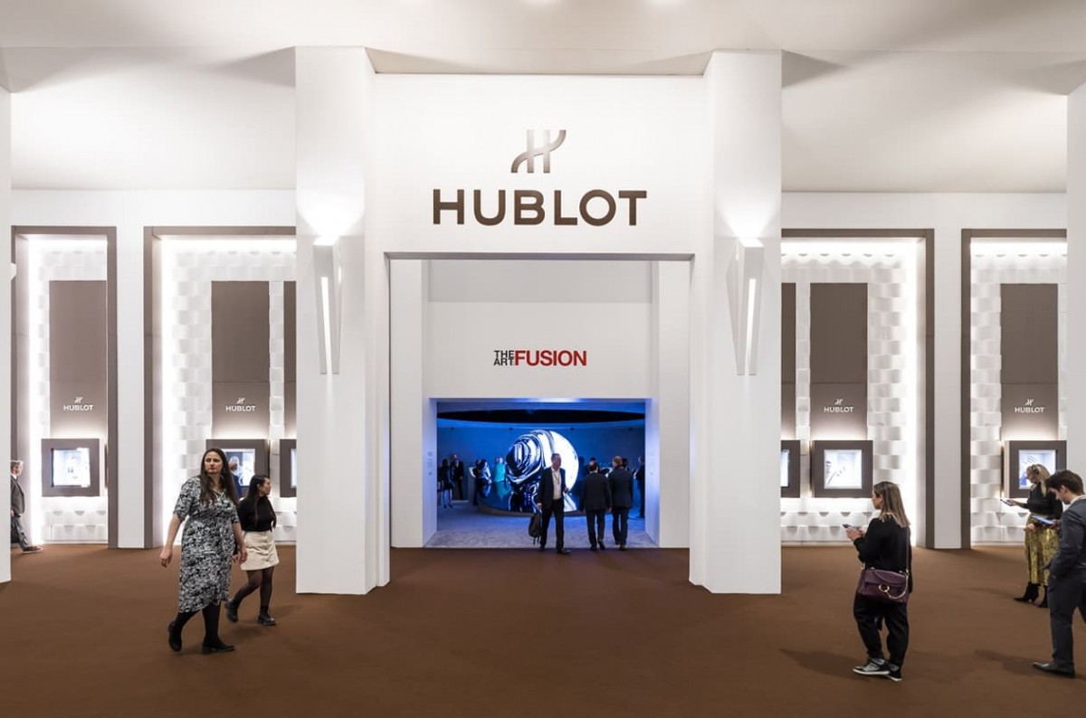 ▲宇舶在2023年鐘錶與奇蹟錶展的展場設計充滿前衛科幻風格,精心佈置呼應其「融合的藝術」品牌精神。