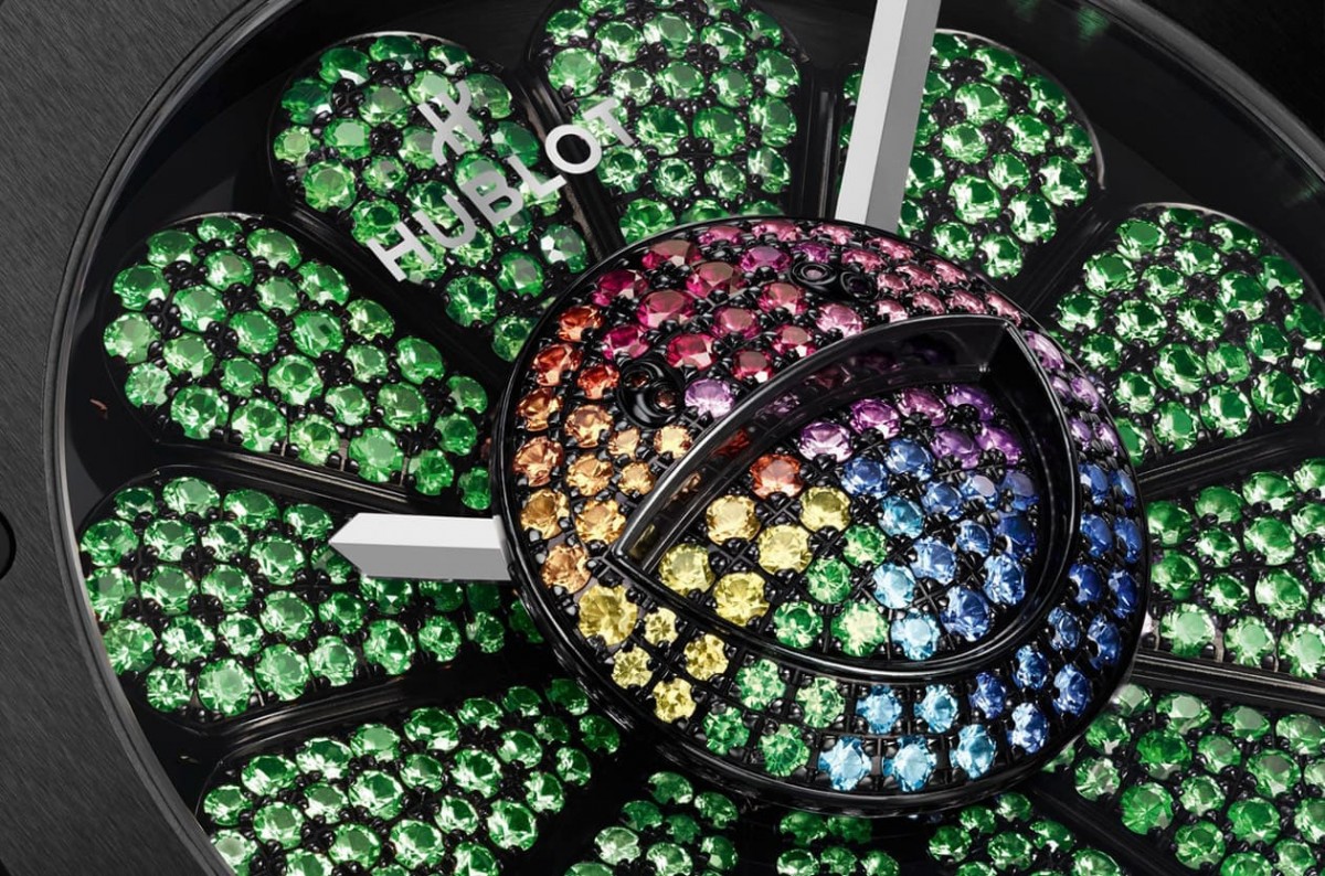 宇舶特別在2023年日內瓦鐘錶與奇蹟錶展一口氣展出13款第三代微笑之花聯名錶,它們擁有一些共同點如採用黑色陶瓷錶殼、黑色橡膠錶帶,並搭載3日錬的HUB1214自動機芯,其中12款手錶面盤上的微笑之花活動裝置的花瓣分別採用單一色調的寶石鑲嵌(花蕊則是鑲上七彩寶石),唯獨第13只不只花蕊,包括花瓣也鑲上五顏六色的寶石,展現繽紛至極的色彩魅力,吸睛效果與手錶的入手難度成正比,而這次在錶展上難得集齊全套,也可能就是第三代微笑之花聯名錶唯一同台亮相的時刻,在現場有緣欣賞到整組手錶的人士絕對會是他們心中難以忘懷的珍貴記憶。