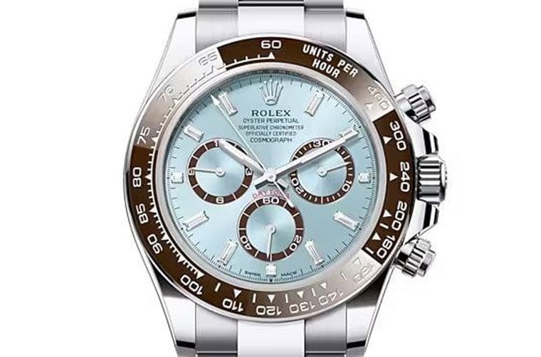 2023年新改款的Daytona鉑金冰藍面126506依舊維持面盤無鑲鑽與鑲鑽兩種版本,勞力士這次就沒有特別針對時標鑲鑽與否作出細節區隔,若加上Daytona系列整體的細節為調,那麼時標鑲鑽版本的126506-0002至少會有以下點比較重大的變革。