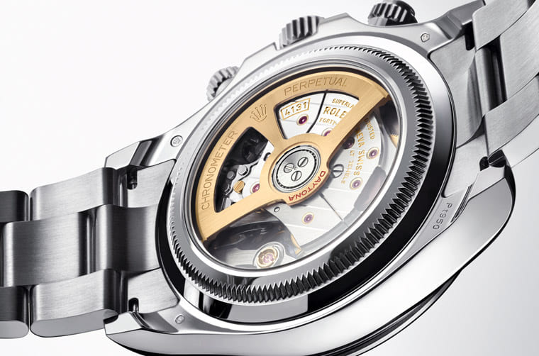 其中第4點和第5點必需特別強調,並非所有Daytona都改成透明底蓋,只有鉑金冰藍面型號126506才享有這種「額外福利」,還有一點則是鉑金冰藍面Daytona型號126506所搭載的4131機芯也獨立於系列大多數作品換上皇金自動盤,其他Daytona款式搭載的4131機芯自動盤則還是一般金屬,藉由以上種種細節微調,Daytona系列旗艦款鉑金冰藍面於視覺上看起來更統合一致,而且還多了透背與K金等系列其他型號所沒有的待遇,更能突顯此一型號在系列中的頂尖地位。