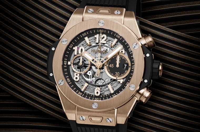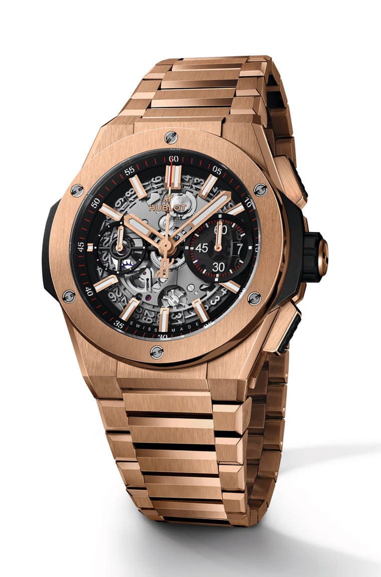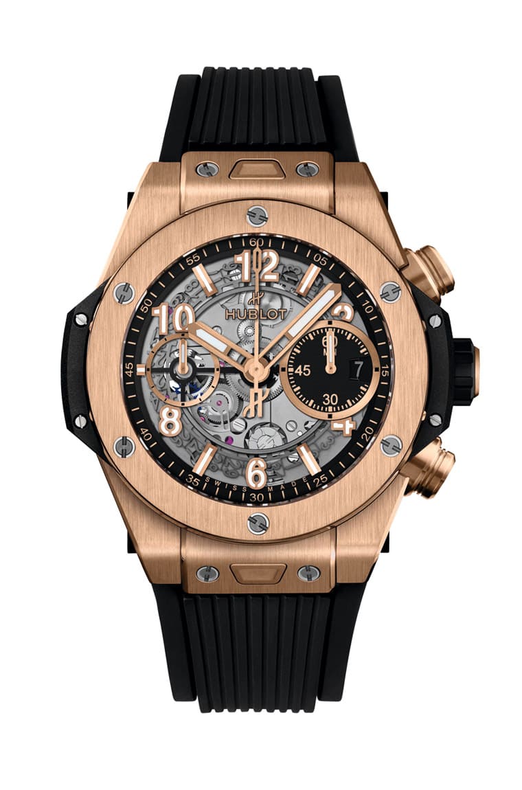 18K皇金材質/HUB1280自動上鍊機芯/時、分、小秒、日期顯示/計時碼錶功能/藍寶石水晶鏡面、透明底蓋/防水100米/錶徑42mm/參考價:NT$ 1,240,000