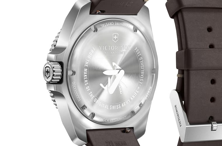 ▲機械機芯款式採用透明底蓋,讓人可以一窺機芯結構。錶背都刻印有瑞士刀圖案,讓人想起品牌特色。