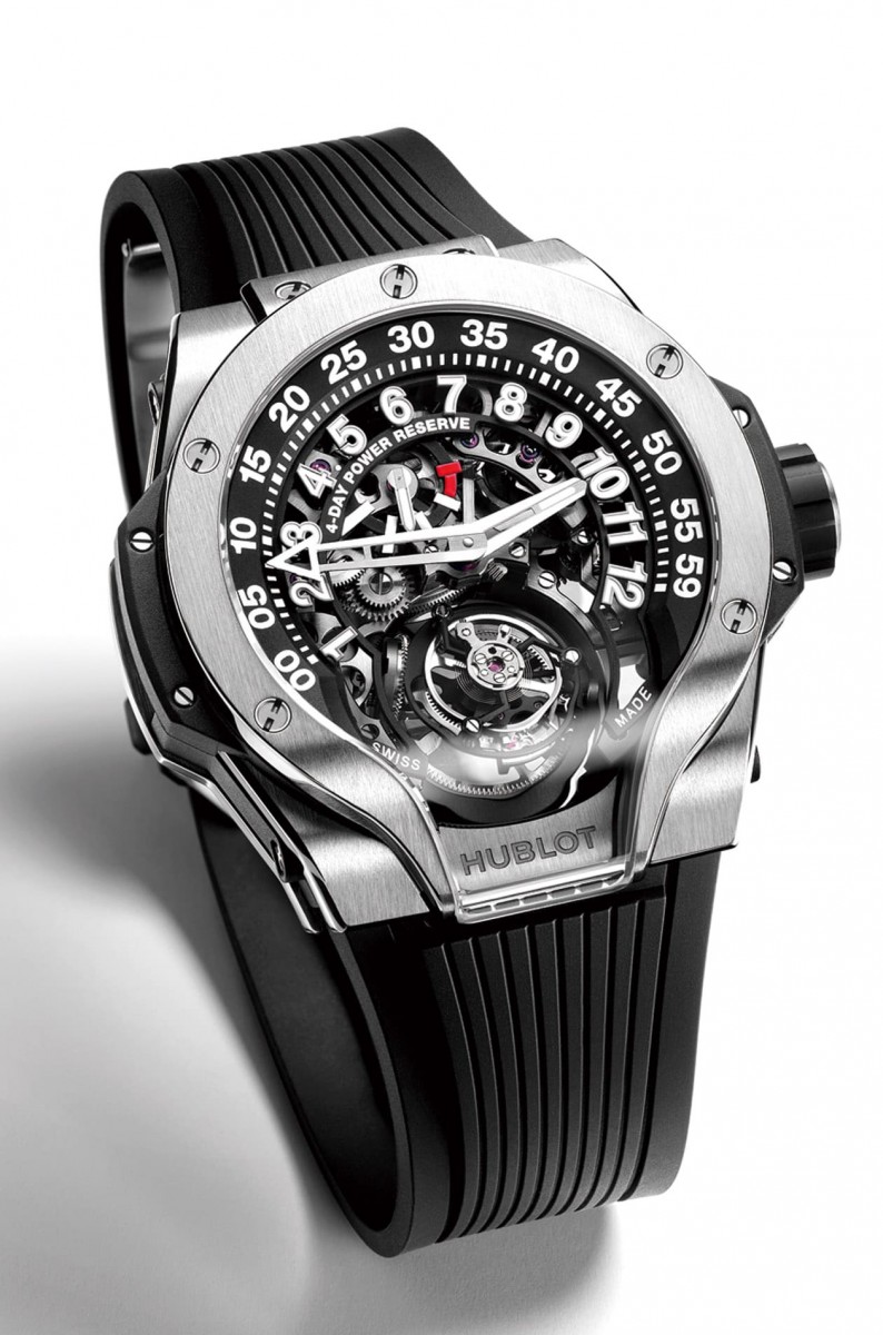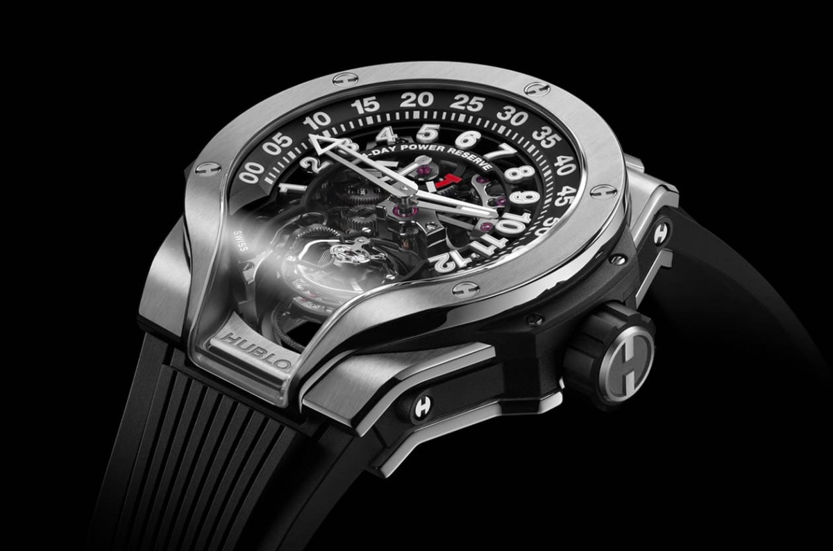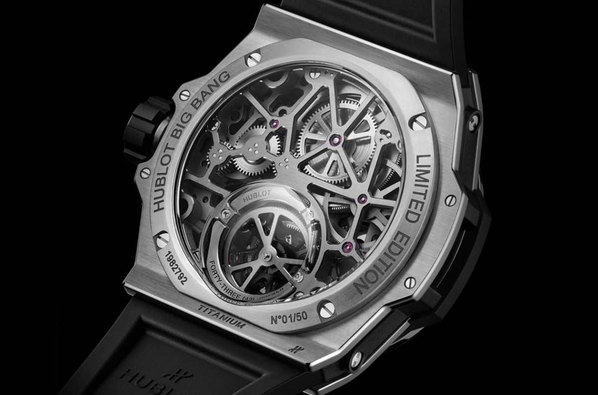 鈦金屬材質/HUB6200手動上鍊機芯/逆跳時、逆跳分顯示/雙軸陀飛輪裝置/動力儲存顯示/藍寶石水晶鏡面/防水30米/錶徑44mm/限量50只