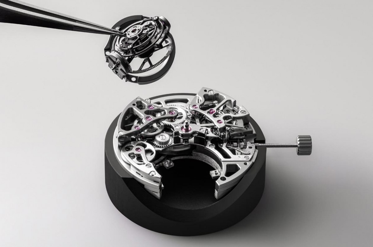 ▲HUB6200為品牌首款小時及分鐘雙逆跳機芯,加上雙軸陀飛輪進階複雜功能,組裝過程格外耗時費工。