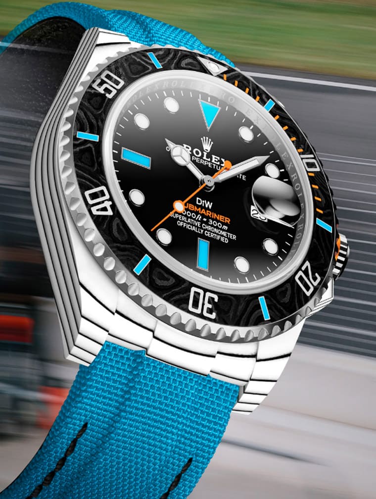 ▲DiW持續以賽車為主題,打造出Submariner Racer S,雖然手錶原本定位為潛水錶,但是套用在賽車風格中卻不顯突兀。Source:Designa Individual Watches