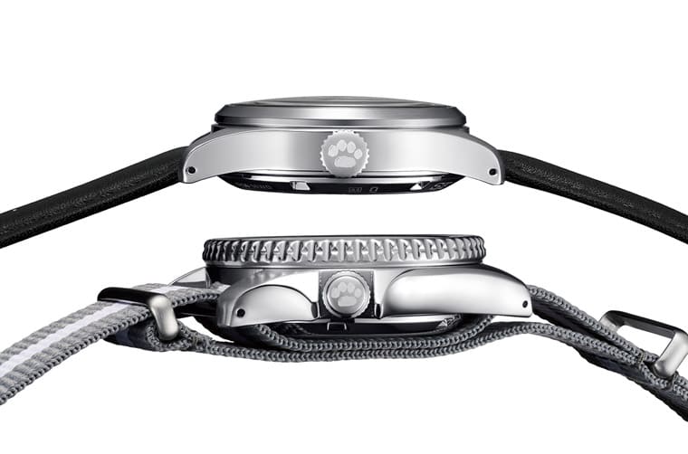 ▲兩款Peanuts聯名錶的錶冠上都特別印有史努比的掌印裝飾,呼應手錶的設計主題。