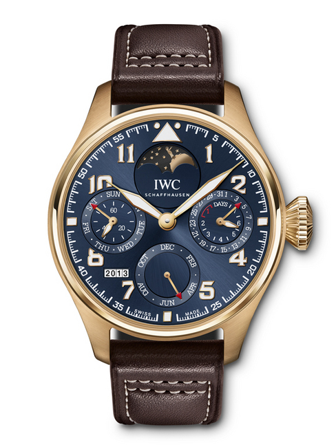 大型飛行員萬年曆手錶「小王子」特別版是優雅風度和頂級機械手工技藝完美融合的典範。這款特別版手錶匯集了科技的最高成就,其中包括功能強勁、具備比勒頓自動上鏈系統和7天動力儲備的51613型自製機芯。位於「3點鐘」位置計算器處的顯示窗能將這枚強大機芯的高效能栩栩如生地展現在佩戴者眼前。它擁有足夠的動力推動諸多複雜鐘錶功能的運轉,比如具有四位數字年份顯示的萬年曆及日期、星期、月份顯示。所有的顯示裝置均可透過錶冠操作,並自動調校。萬年曆直到2100年才需要通過製錶師進行調校,因為該年與其他以四年為周期的閏年不同,並非閏年。在深藍色的錶盤上,極具特色的駕駛艙設計與萬年曆的精巧顯示窗相得益彰。大型飛行員萬年曆手錶「小王子」特別版首次將經典的月相顯示帶入IWC萬國錶的大型飛行員系列手錶之中。月相顯示均逐一裝飾有小王子形象——他正一個人站在他的小小星球上,抬頭仰望著繁星閃爍的夜空。畫面以聖艾修伯里親手繪製的著名插圖為藍本,這個插圖印製在其最負盛名的作品封面上。飾以18K金質徽章的擺陀則再次呼應了這個主題,透過透明藍寶石玻璃錶底可以一飽眼福。上鏈擺輪上鐫刻有第一版的原始標題——「LE PETIT PRINCE」字樣。紅金款式特別版限量270枚。購買手錶的同時還可獲得IWC萬國錶獨家設計的專屬精美禮盒,內含兩項珍品:一本是英文原版《The Little Prince》的複製版,另一本則是由作者親筆寫成的法語原始手稿《Le Petit Prince》的重印版。