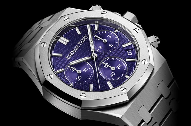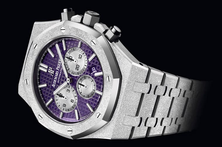 ▲AP在2019年發表的霜金皇家橡樹計時碼錶,面盤同為紫色,不過小錶盤則是銀色。