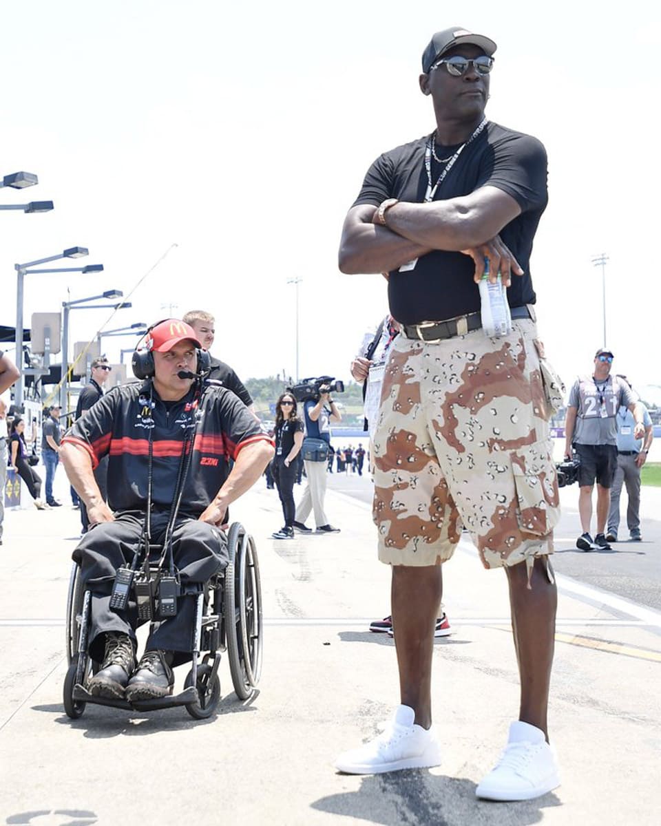 ▲籃球大帝麥可喬丹最近現身Ally 400賽事,整身裝扮相當輕鬆隨興。Source:Twitter @ComplexSneakers