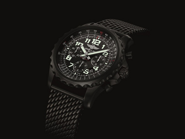 BREITLING為專業飛行員打造腕上儀錶,同時亦為個性不羈的男士製造精密手錶,他們懷有駕駛戰鬥機沖上雲霄的夢想,生活中亦擁有敢於挑戰極限追逐自由的氣魄。BREITLING Chronospace Automatic 太空自動計時手錶正是一款男士無法抗拒的魅力時計。如今,BREITLING重新詮釋其獨特美學,推出全球限量1,000枚的黑鋼版手錶。BREITLING