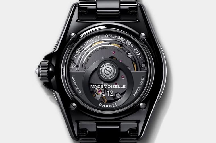 錶背同樣有透明底蓋設計可以一窺Caliber 12.1機芯的樣貌,香奈兒還在透明底蓋上緣印上了”Pièce unique. Only Watch 2023”字樣,由此展現Only Watch特別版超級稀有的特性。Caliber 12.1機芯擁有鏤空自動盤賦予機芯鮮明個性,這枚機芯的鏤空鎢合金自動盤有助於提升上鍊效率、動力儲存提升至70小時水準並通過瑞士天文台認證,呈現更濃厚的專業製錶氛圍,於腕錶的魅力顏值下,提供其精準走時的堅強後盾。