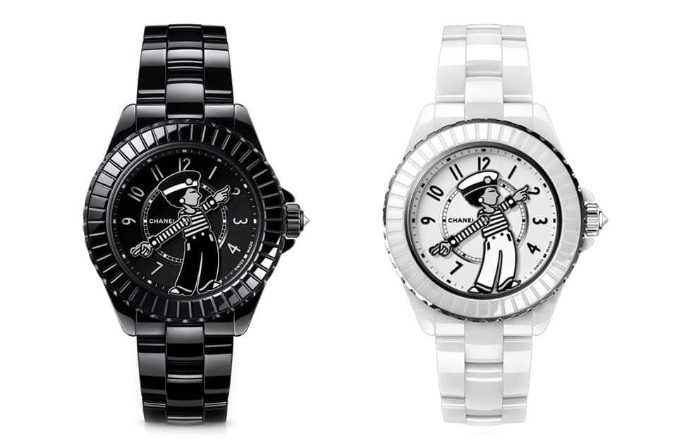 Mademoiselle J12 La Pausa腕錶Only Watch特別版延續2022年~2023年品牌推出的同款作品設定,面盤安排了Q版的香奈兒女士圖案並化作時、分指針的作用,Q版圖案的服裝靈感來自香奈兒女士拍攝於蔚藍海岸的La Pausa自家別墅花園的一張照片,照片上她身穿條紋上衣搭配鈕扣褲裝,香奈兒精心替腕錶上的Q版圖案加上海軍帽點綴,展現出一派率性自在的個性。