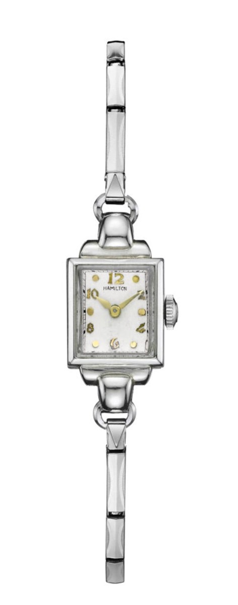 1947製/鍍金材質/時、分顯示/白色面盤/金屬鍊帶/錶徑15x13.5mm