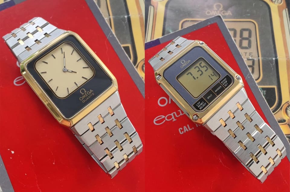 ▲歐米茄在1980年代為了順應石英革命的潮流,曾開發一款能夠雙面翻轉的石英錶Equinoxe。Source:ticctacc