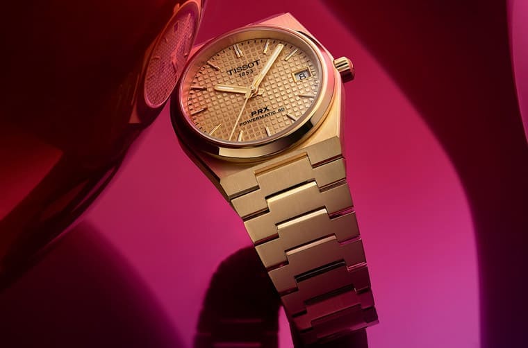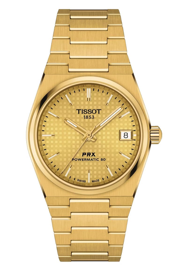 ▲35mm的PRX Powermatic 80前不久才一口氣發表四種面盤新色,最近天梭又再追加兩款新作,其中包括鍍金設計。