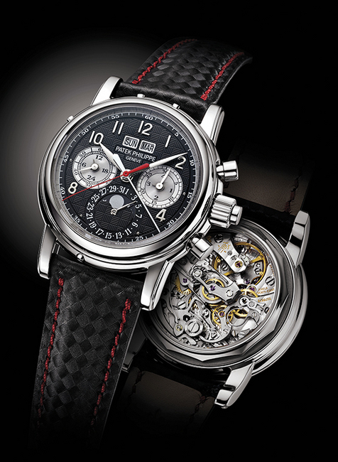 該機芯共有407個零件,均按照百達翡麗製錶工坊的傳統工藝,以手工方式精心裝飾處理。長期以來,百達翡麗為這款擁有極為罕見的複雜功能組合機芯搭配款式經典、低調優雅的白金、黃金、玫瑰金或鉑金錶殼,以及數量極少的不繡鋼錶殼。這枚專為2013年Only Watch拍賣會特别製作的Ref. 5004T則是該系列首款也是唯一一款採用鈦金打造的時計。