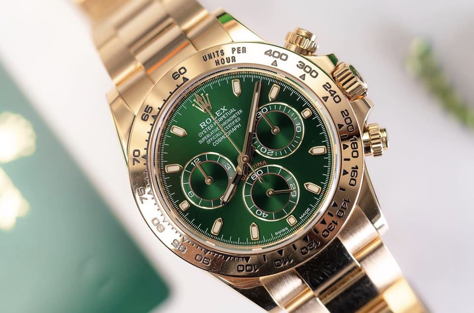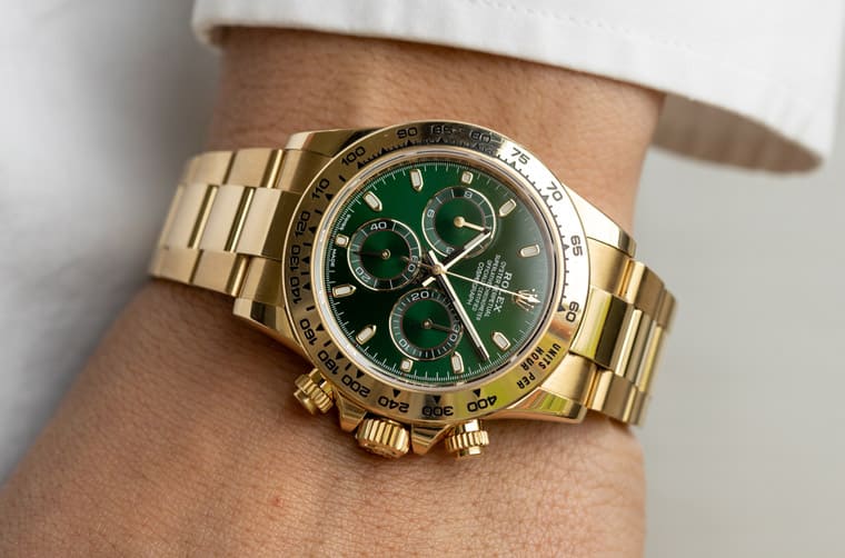回想綠金迪2016年剛登場之際,市場對這款錶的反應還滿平靜的,它的國外二級市場價格一直到2019年以前都還在約莫4萬3千美金(當時的定價約3萬6、7千美金)之下,可是受到綠面熱潮助威、黃金材質鹹魚翻身,以及音樂才子John Mayer愛戴的名人加持效應等各種因素影響,它在前幾年之間有三個時期在二級市場上的價格出現明顯增長。