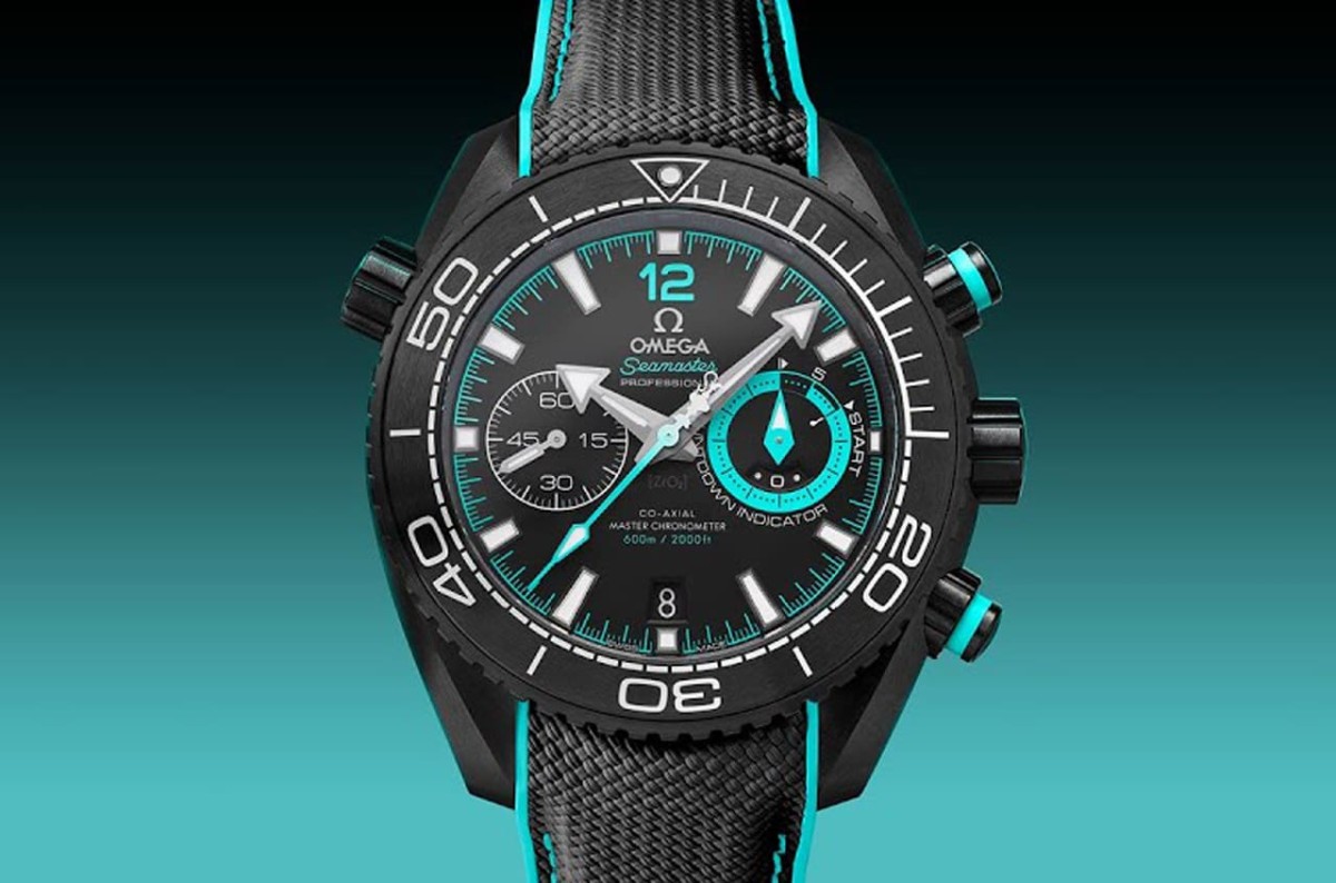 阿聯酋航空紐西蘭隊的帆船船身除了有代表歐米茄的紅底白字塗裝,本身則是以黑底搭配綠松石色的組合賦予船身高辨識度外型,因此歐米茄這次創作的海馬Planet Ocean Deep Black特別版就以這兩種顏色為主,展現手錶與ETNZ船隊的淵源。