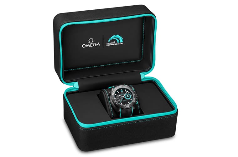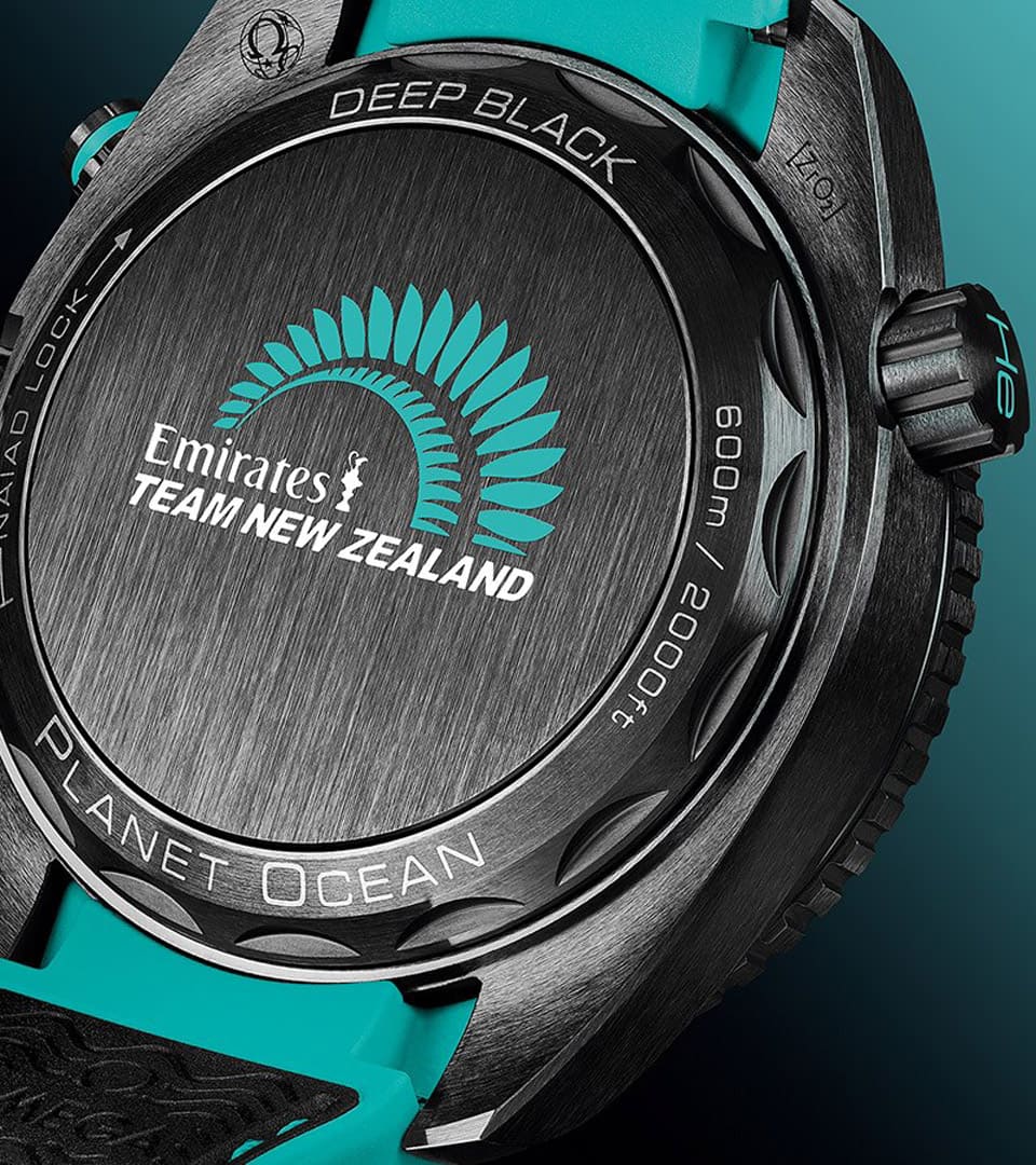 OMEGA歐米茄是美洲盃帆船賽勁旅阿聯酋航空紐西蘭隊(Emirates Team New Zealand, ETNZ)的長期合作品牌,最近為了替阿聯酋航空紐西蘭隊即將參與第37屆美洲盃造勢,歐米茄特別推出一款海馬Planet Ocean Deep Black特別版,手錶外觀讓人一看到就想起ETNZ船隊的招牌形象。