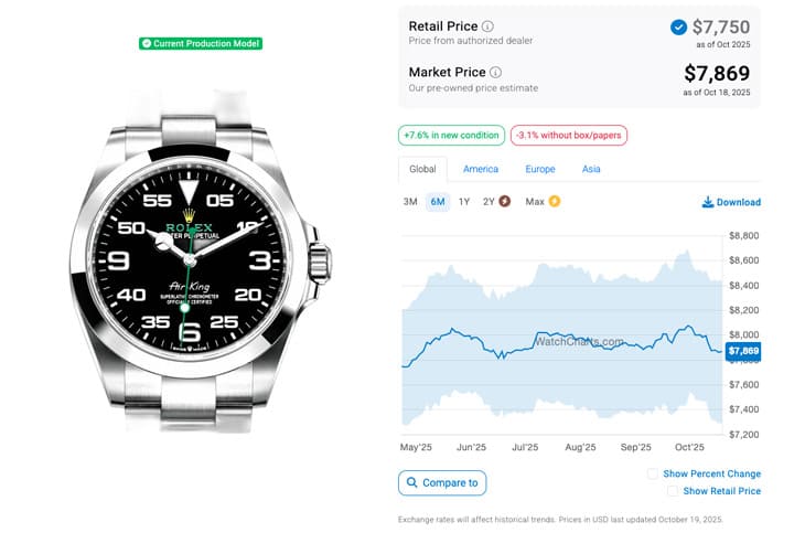 ▲Air-King 126900目前國外最新報價與價格走勢。Source:WatchCharts