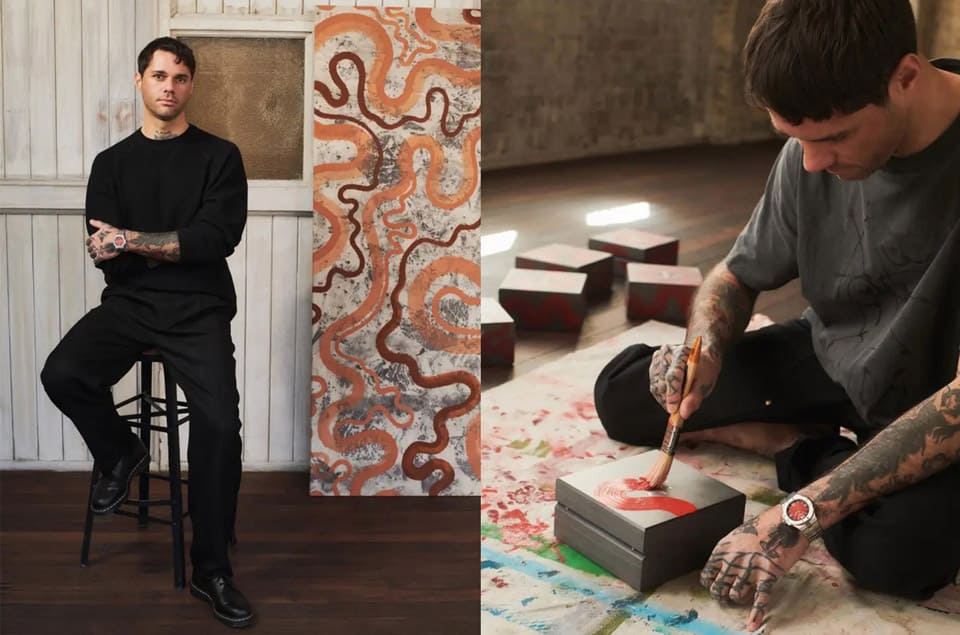 ▲品牌與澳洲原住民藝術家Shaun Daniel Allen合作,請他在透明底蓋與錶盒上作畫,賦予手錶獨一無二的藝術美感。