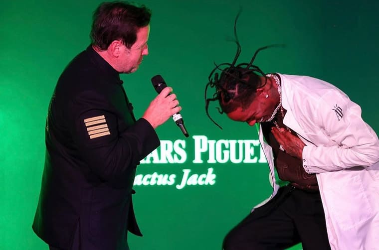 日前愛彼AP於紐約舉行了AP x Travis Scott皇家橡樹鏤空萬年曆的新品發表會,現場宛如一場小型的個人演唱會,並且用綠色霓虹燈點亮室內氛圍,帶點迷幻又科技感的派對風格,除了愛彼AP總裁François-Henry Bennahmias親臨現場,與Travis Scott聊聊手錶以及雙方合作的新台之外,後者也找來知名嘻哈製作人Metro Boomin一起上台表演,共同炒熱發表會氣氛。