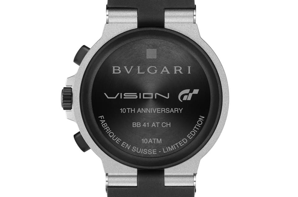▲錶背分別鐫刻寶格麗Logo以及Vision GT 10週年紀念標誌。