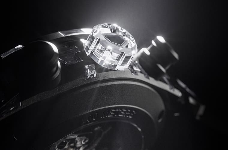 ▲整枚錶冠鑲上實驗室培育鑽石,看起來奢華又氣勢萬千。