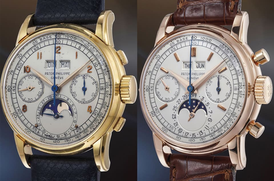 PATEK PHILIPPE 2499萬年曆計時碼錶。First-Series黃金款成交金額260萬美金、Second-Series玫瑰金款成交金額320萬美金