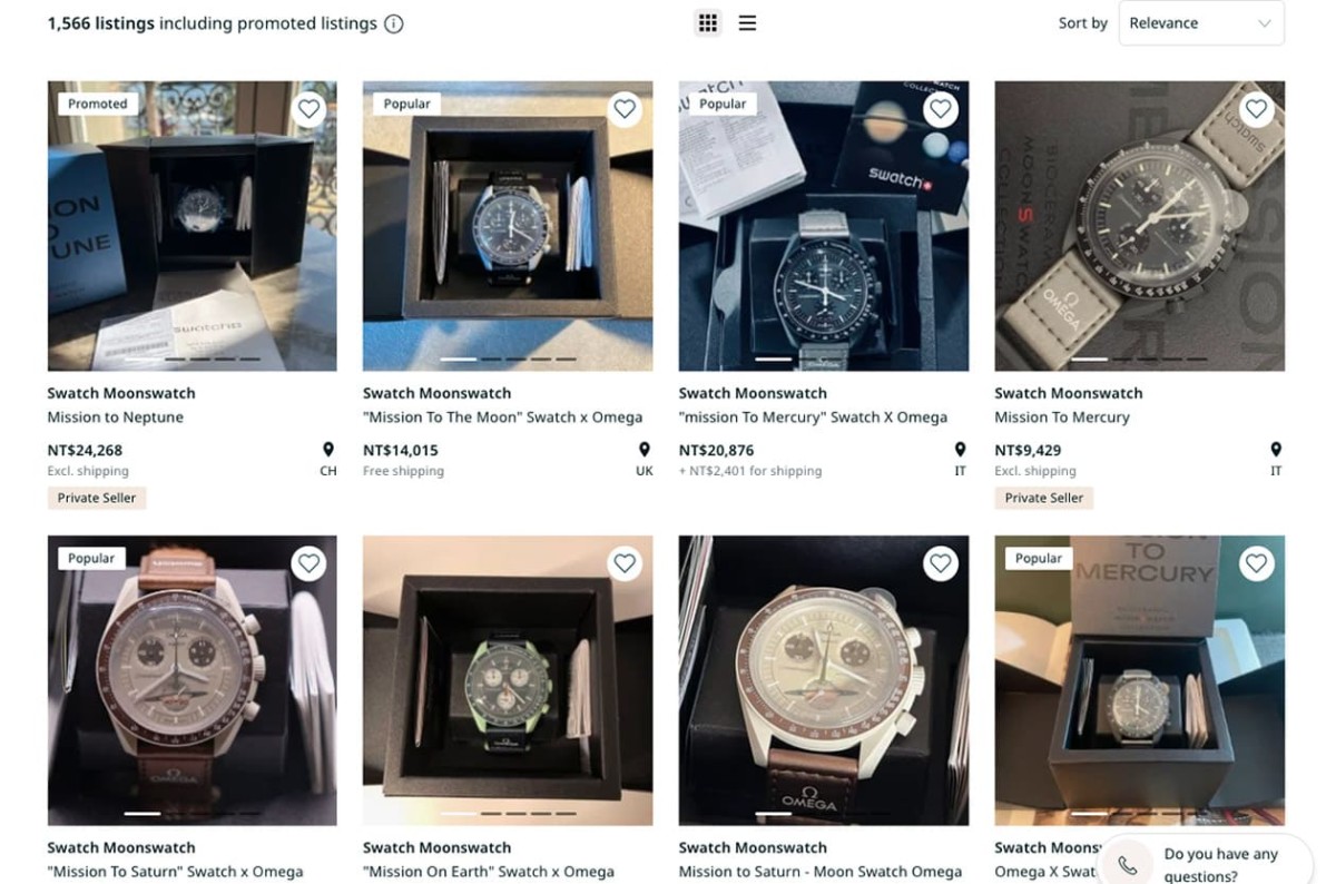 ▲SWATCH x 歐米茄MoonSwatch前兩年爆紅,高人氣反映在Chrono24的銷售量上,其在全年度銷售排行足以躋身第三。Source:Chrono2