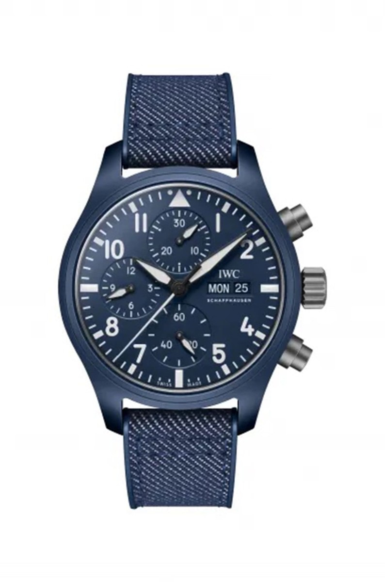飛行員系列近年時不時會有陶瓷錶殼作品,而且不只有黑色或白色,之前陸續有卡其色、綠色和這次介紹的藍色陶瓷,展現出品牌主力作品不斷創新的活力。IWC和Pantone®合作調配出陶瓷錶殼呈現的深藍色調,據說這種藍色的靈感來自美國海軍的制服,手錶還有個亮點在於它的織物錶帶帶有牛仔布般的花紋,和藍色陶瓷殼搭配剛剛好,而且展現出手錶的年輕朝氣。至於手錶面盤沿著錶殼與錶帶配色順利成章採用深藍色,而包括時標、指針上的夜光圖層與其他刻度和字樣等則都是白色以強化手錶的閱讀清晰度。錶款搭載69380機芯,這枚機芯具有傳統的導柱輪設計、動力儲存46小時,且機芯外圍配備軟鐵內殼,能夠有效提升機芯的抗磁效果。錶背實底蓋改用親膚性較佳的鈦金屬製成,底蓋上一如Top Gun系列作品也刻有海軍空戰部隊標誌,由此拉回手錶和飛行世界的連結。