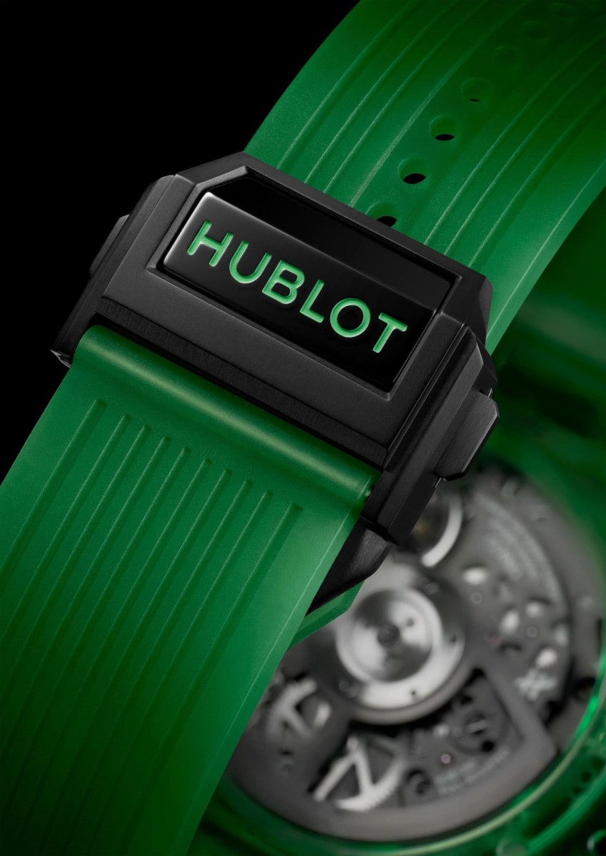 ▲Big Bang Unico SAXEM青綠計時碼錶搭配綠色透明橡膠錶帶,使手錶呈現相當一致的色彩感。