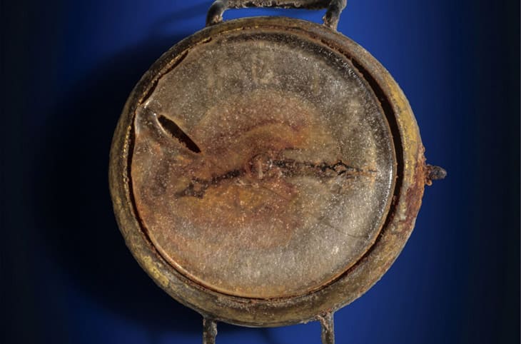 令人感到難過的是,手錶的時分指針透過已經斑駁的鏡面還是可以看到,它們停在約莫8點15分的位置——這正是美國陸軍航空軍(USAAF)於1945年日本時間8月6日上午8點15分在日本廣島市投下人類戰爭史上第一顆原子彈的絕命時刻。