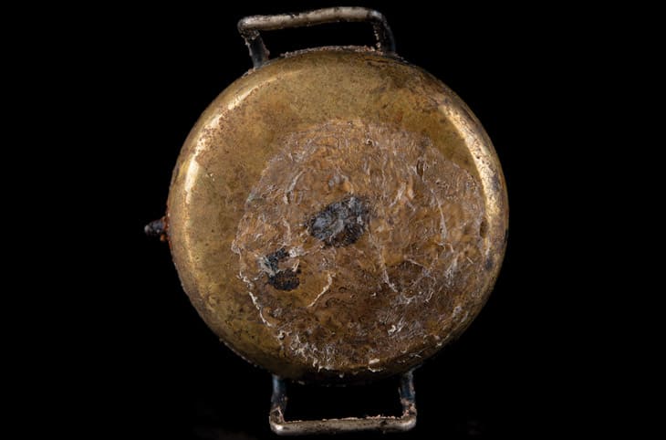 ▲RR Auction近期舉辦的線上拍賣會上,有一款二次世界大戰結束後被發現的手錶被拿出來拍賣,手錶曾經過火燒,因此狀態斑駁不堪。Source:RR Auction